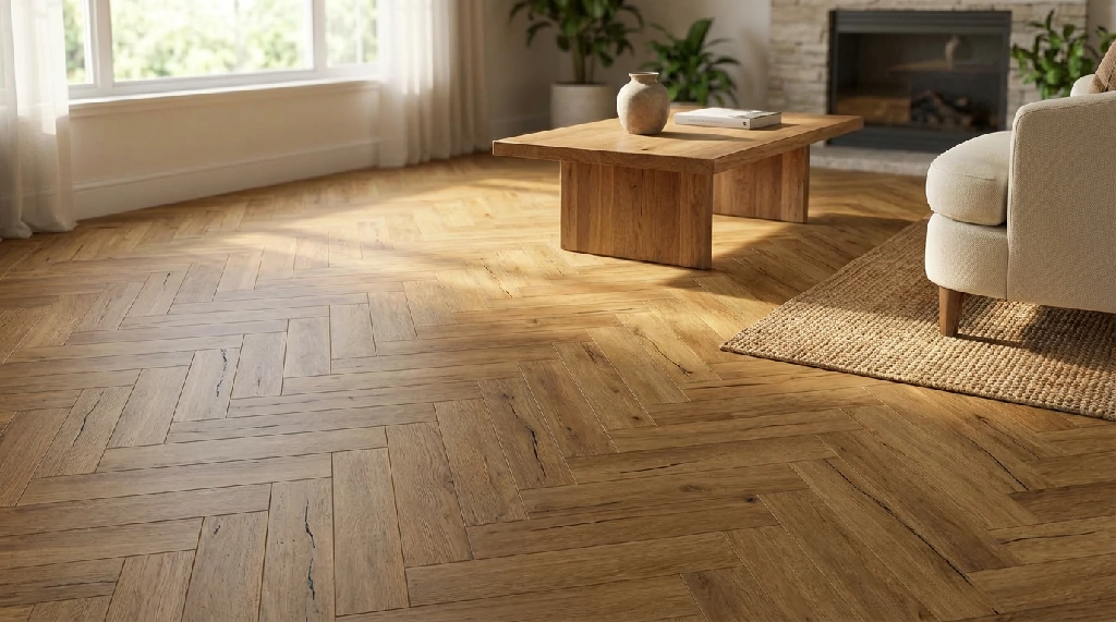 - Authentic Herringbone Aesthetic: The 606x101mm small plank design perfectly replicates the refined, vintage texture of classic herringbone, instantly elevating space design.