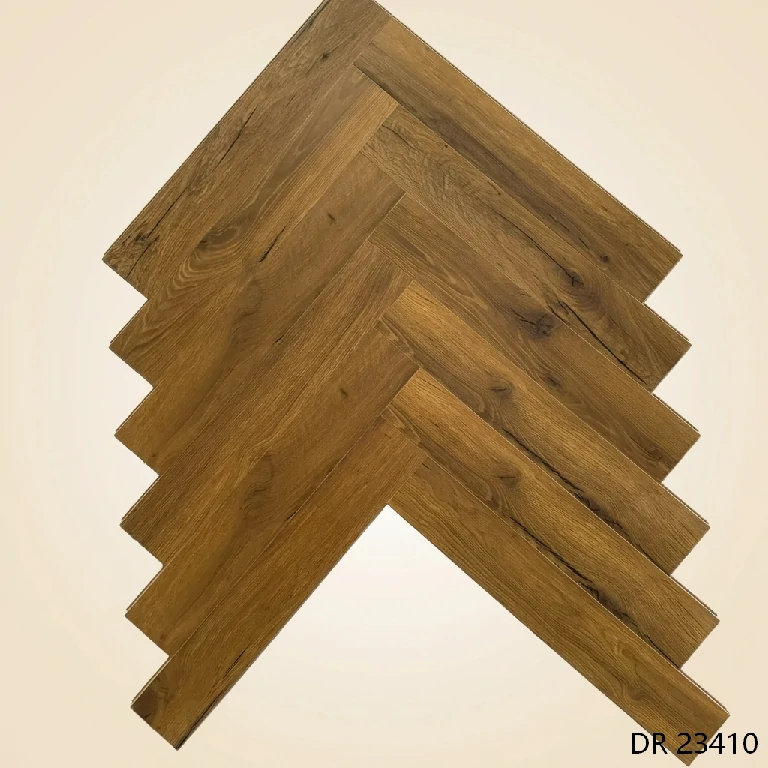 This 8mm Herringbone Laminate Wood Flooring features 606 × 101 mm small planks that accurately recreate the classic herringbone pattern with clear texture and depth.
